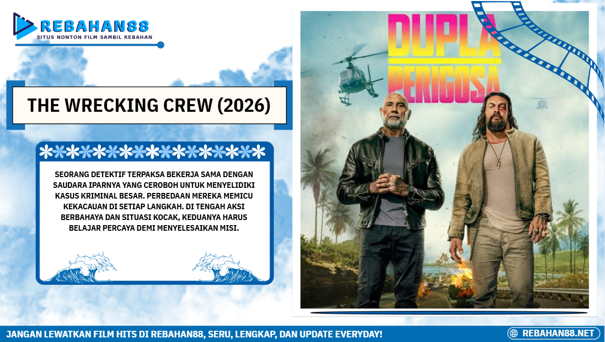 REBAHAN88 kembali menghadirkan aksi komedi penuh adrenalin melalui The Wrecking Crew (2026). Film ini memadukan ledakan aksi, humor segar, dan dinamika buddy-cop yang seru dalam satu paket hiburan yang ringan namun penuh energi.